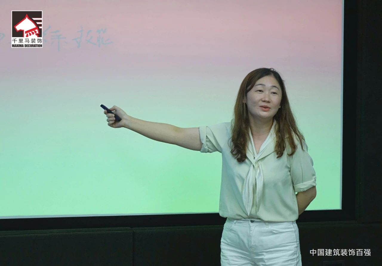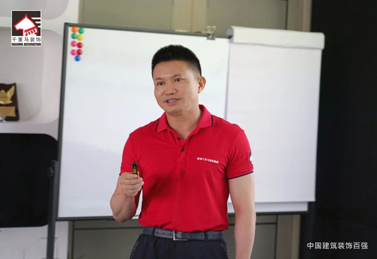 邁進會議室,迎面而來的是擺放得整整齊齊的藍色課桌,抬頭看,清新怡人的藍白色相間的橫幅映入眼簾——“深圳千里馬裝飾集團MTP管理才能發展培訓”,原來是為了提升中層管理